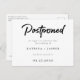 Trendy brushed script Postponed wedding announcement postcard. Multiple template text lines for your names, date, message and website.