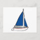 Brushstroke Ship with Blue Sail Postcard
