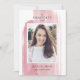 This graduation card announcement features a pretty minimal desiign with watercolor brushstrokes in watercolor dark pink with a room for a vertical senior picture of your beautiful grad! Personalize the card adding your photo, name and year. Add an extra message on the back using the template.