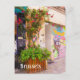 Brussels Belgium postcard. Street view in Brussels with roses and vintage drawings.