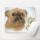 Brussels Griffon with bright eyes is posed with three hearts against a soft blue backdrop.
