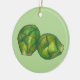 Ornament features an original marker illustration of a pair of delicious green brussels sprouts vegetables.