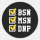 Bsn Msn Dnp Doctorate Degree Checklist Graduation Classic Round Sticker
