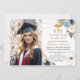 Class of 2026. Elegant nursing graduation party invitations featuring a watercolor boho floral, a photo of the graduate, gold sparkly lights, the caduceus symbol, and a modern text template that is easy to personalize.