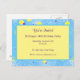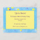 Colourful purple and yellow dots on a textured blue background make a great personalized birthday invitation design.