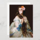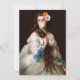 Pop art remix of a vintage painting of a woman with two flowers in her hair blowing a pink bubble gum