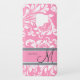 Elegant Bubblegum Pink and white floral damask pattern with personalized monogram. Beautiful iPod cases.