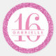 Pink Glitter border with bubblegum pink coloured customizable birthday age and name text. Great accent for elegant and modern princess birthday for little girls, Bat Mitzvah celebrations, sweet sixteen, 16th birthday parties, Quinceaneras, baby showers, bridal showers, and weddings. The artwork is a printed image of glitter - no real glitter is used. Visit the Paper Grape Zazzle shop for coordinating party goods, stationery, and invitations.