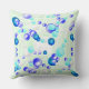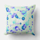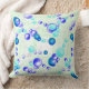 This throw pillow presents an abstract display of bubbles against a white canvas with a neon-cyan square line overlay, creating an engaging visual.