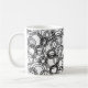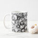 This mug has a mid-century modern design of concentric circles scattered about the whole design.