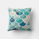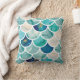 Bubbly Aqua turquoise marble mermaid fish scales Throw Pillow