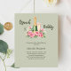 A modern, stylish and glamourous invitation for a Bubbly brunch Bridal Shower. A sage green coloured background with pink roses, a sparkling wine flask and a flute. Personalize and add your party details.