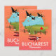 Bucharest Romania vacation map with flying geese and a red biplane.