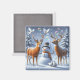 A carrot-nosed snowman in a frosted black hat smiles between two buck deer. One deer cheerfully blows colourful transparent bubbles into the snowy sky, as flying white turtle doves look on against a cloudy grey backdrop.
