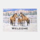 A family of buckskin appaloosa horses in their winter ranch corral.