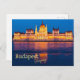 Along the beautiful, blue Danube river, the Hungarian parliament buildings glows in the early evening in Budapest. This postcard is fully customizable and transferable to other products.