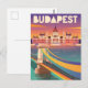 Celebrate the timeless beauty of Budapest with this vintage-style postcard. Featuring iconic landmarks such as the Parliament Building, Chain Bridge, and Buda Castle, this artwork evokes the charm and grandeur of Hungary's capital city. A perfect collectable for travel enthusiasts and admirers of historic European destinations.