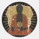 Buddha silhouette sits cross legged in dark orange robe meditating with the Devanagari Om Symbol on his palm! Half tone background shield background creates a powerful yet peaceful Buddha gift!