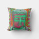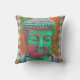 Buddha Pop with Patchwork Borders in Green and Red Throw Pillow