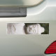 The product works very well. Zazzle delivered it in a sturdy packaging, with a special folder for the sticker so it wouldn't bend in the mail or anything, which I appreciate. Sticks well to the car, and looks good! The image quality and colour all looks good to me. Up close and afar, I see no problems with it.