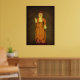 Beautiful standing Buddha displaying the Vitarka Mudra, the teaching gesture. Buddha stands on a lotus flower with dark brown vintage background with light floral elements. Wonder Buddha gifts for Buddhists and Buddhism followers!