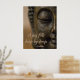 Nice photo of Buddha bust with his famous quote: A JUG FILLS DROP BY DROP. Brown and beige colours with script lettering.