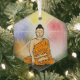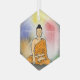 The Buddha is encircled by the Wheel of Dharma, which represents the Noble Eightfold Path—a guide to liberation and the foundation of his teachings.