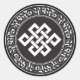 The endless knot is a symbolic knot and one of the Eight Auspicious Symbols of Buddhism. The Endless knot symbolizes Samsara, the endless cycle of suffering or birth, death and rebirth within Tibetan Buddhism. This Endless knot is surrounded by a circular vintage floral pattern, the design is in black and white colours.