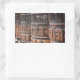 Rectangular photo sticker with brass buddhist prayer wheels closeup in the temple Swayambunath in Kathmandu, Nepal.