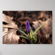 A budding Crocus flower illuminated by the sun at Jesmond Dene, Newcastle upon Tyne.
