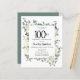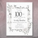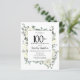 Elegant 100th birthday party invitation features a botanical frame of white flowers and deep green leaves. The birthday person's name is written in a traditional script text. All of the text can be easily edited to create just the right celebratory tone.