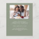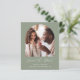 This simple, minimalist Save the Date card features a boho photo arch above the words "Save the Date" in elegant white handwriting script, followed by the couple's names, wedding date and city in sans serif font on a sage green background. Add a second, horizontal photo and a more detailed message with additional information on the reverse.