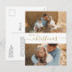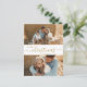 Modern, Minimalist, Elegant „Merry Christmas” Script 2 Photo Collage Christmas Holiday Postcard in gold and white. This festive, clear minimalist, twoo (2) family photo holiday card template features a pretty grid photo collage and saying „Merry Christmas”! The „Christmas” greeting text script is written in a hand lettered swirly swash tail font type. On the back side one photo and your message. Pretty greeting card for your family and friends in Winter Holiday season.