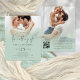 A value for money BUDGET alternative on a smaller size 4.5 x 5.6” semi-gloss 110lbs weight, which is of similar thickness to a postcard (however is not suitable to use as a postcard.). PLEASE NOTE there is ONE invite per sheet. Budget 2 Photos Overlay Script QR Code Sage Green Wedding Add your QR code to your wedding website on the back so your guests can RSVP and see all the details online without the need for separate enclosures. An informal set typography for the main heading the Wedding Of complementing the rest of the text which you can easily personalise. Replace the sample photos with your own favourites.