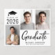Modern and budget-friendly graduation announcement featuring 3 photos and "Graduate" in a contemporary bold script. Add the grad's name, class year and school or university in simple typography.