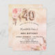 A rose gold, blush pink rustic faux metallic looking background. Decorated with rose gold and pink florals, roses, pampas grass. Personalize and add a name and party details. Number 40 is written with a balloon style font.