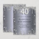 A modern, stylish and glamourous invitation for a 40th birthday party. A faux silver looking background, decorated with glitter dust. Personalize and add your name and party details. Number 40 is written with a balloon style font, script.