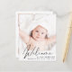 A budget-friendly option to announce your baby's birth, featuring his or her photo overlayed with "Welcome" written n a stylish script. Add his or her name, birth date and birth stats. On the back, add three additional photos and personalized message.