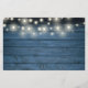 A budget 50th wedding anniversary invitation featuring string lights and delicate golden love hearts confetti on a blue rustic wood background. Personalize with your favourite wedding photo and your special 50th golden wedding anniversary celebration details in chic typography. Designed by Thisisnotme©