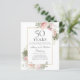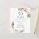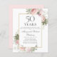 Elegant 50th wedding anniversary invitation template features a gold frame and two arrangements of blush pink roses. All of text is editable.
