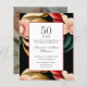 This design features an elegant botanical pattern of pink, gold and burgundy flowers and leaves in vintage watercolor palette on a black background with your 50th wedding anniversary details displayed in a modern combination of cursive and serif fonts over a white frame with a chic dark red border. On the back space for your favourite PHOTO! Perfect for elegant or formal anniversary celebration, or outdoor or garden Vow Renewal with romantic vibes.