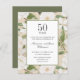 This design features an elegant botanical pattern of white flowers and leaves in watercolor palette of ivory, cream sage and moss green on a ivory background with your wedding details displayed in a modern combination of cursive and serif fonts over a white frame with a chic green border. Perfect for summer or spring anniversary celebration, or outdoor or garden wedding Vow Renewal with romantic vibes.
