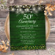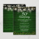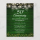 Featuring string lights and delicate golden love hearts confetti on an emerald green rustic wood background. Personalize with your special fifty years golden anniversary information in chic lettering. Designed by Thisisnotme©