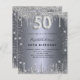 A modern, stylish and glamourous invitation for a 50th birthday party. A faux silver looking background, decorated with glitter dust. Personalize and add your name and party details. Number 50 is written with a balloon style font, script.