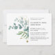 This affordable eucalyptus and gold foil invitation can be used to invite family and friends to join you to celebrate the life of your loved one at a funeral or memorial service.