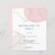 A budget price SMALLER 4.5” x 5.6” alternative. Available in a SEMI-GLOSS 110 lb CARD STOCK which is the default option (thicker for invitations), OR a SATIN FINISH 80 lb THINNER PAPER STOCK (ideal for enclosures). Envelopes are an optional extra and are slightly larger than the card size. Modern abstract shapes and lines in pretty pastel pink and cream with wavy lines decorate the top right and bottom left corners, and stylish minimalist typography is in the middle which is easily personalised to the details of your Bachelorette Party. You can change the background colours on both sides, as well as the text to a different colour if you so wish via the Click to Customize Further option.