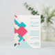 Budget Abstract Turquoise Coral Red Wedding Invite