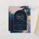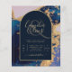 Budget Agate Blue Gold Wedding Invite QR Code RSVP