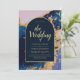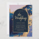 Budget Agate Blue Gold Wedding Invite QR Code RSVP