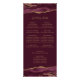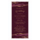 This elegant, modern wedding program features burgundy agate borders trimmed with gold faux glitter. The text appears in stylish gold-coloured calligraphy and sans serif fonts on a burgundy background.